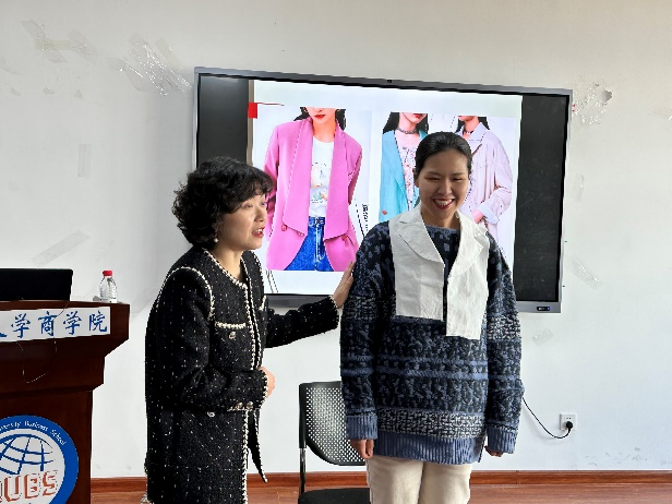 热情高涨的指导环节结束之后,周老师又讲解了如何根据身材体型寻找适合自己的着装,“A型身材宜穿垫肩、宽松上衣;Y型身材适合百褶裙;X型身材适合收腰设计的衣服……”各种各样的穿搭小妙招引得大家赞叹不已。