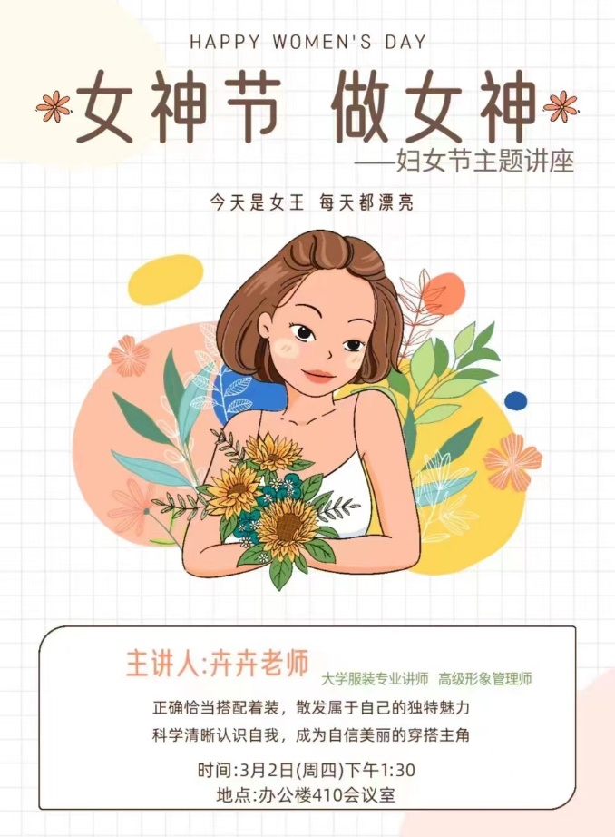 在三八国际妇女节来临之际,Beat365唯一官方网站分工会、妇委会分会于3月2日下午1:30于办公楼410会议室举行“气质穿搭的美学探究”讲座。本次讲座的主讲人是:大学服装专业讲师、高级形象管理师周珍卉老师。本次讲座旨在帮助大家认清自己的风格,了解各种风格所适合的穿搭,实现发现美,追求美的美好愿望。