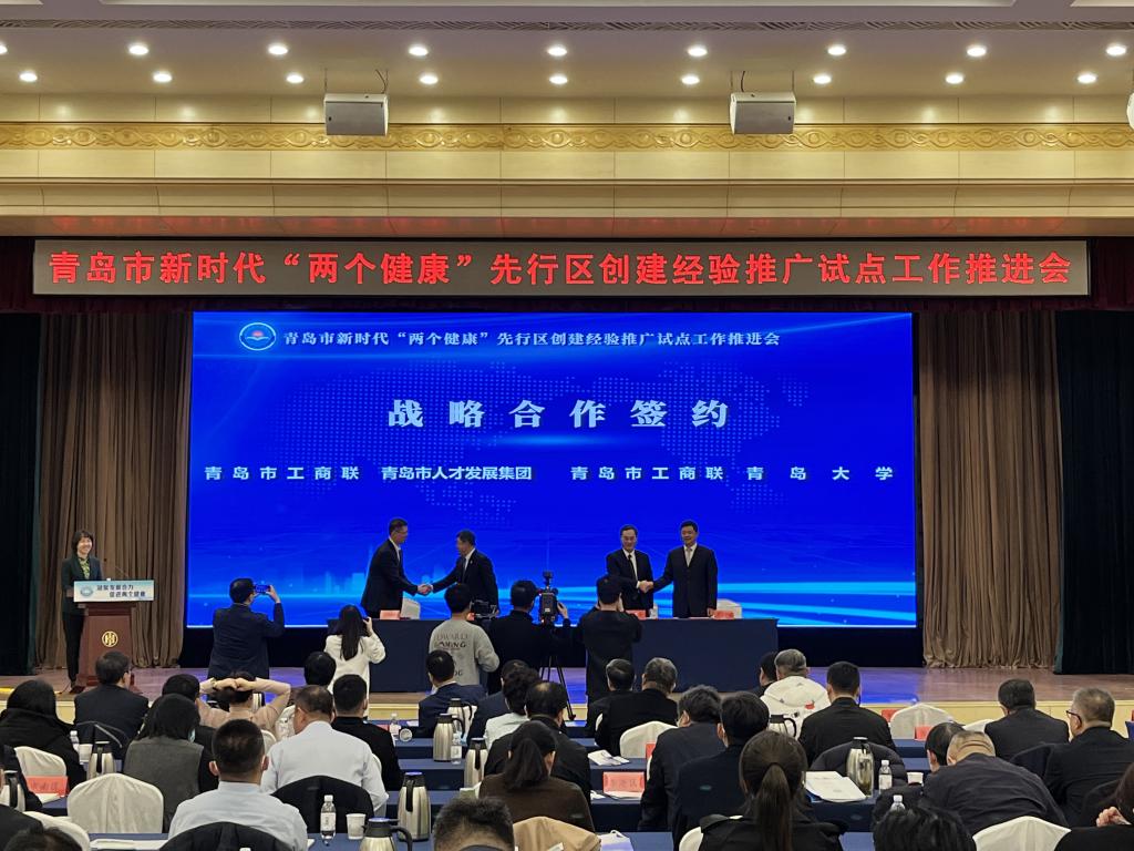 近日,青岛市新时代“两个健康”先行区创建经验推广试点工作推进会召开,青岛市委常委、副市长耿涛,市政协副主席、市工商联主席崔作出席会议。我校党委常委、副校长李军,职业经理人学院院长、青岛市国资委原主任马卫刚,职业经理人学院副院长、Beat365唯一官方网站副院长张磊等参加有关签约活动。会上,李军代表我校与青岛市工商联签署“关于‘Beat365唯一官方网站职业经理人学院’的合作协议”。双方合作的主要内容包括:联合举办职业经理人高级研修班;建立企业发展智库,为企业提供个性化服务;推进招商合作搭建企业交流平台;开展职业经理人资格认证服务,提升企业经营管理人才水准;探索搭建区域性职业经理人市场,集聚高端经营管理人才。
