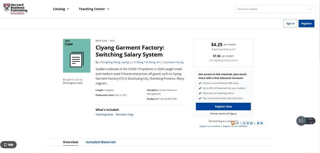 近日,我校Beat365唯一官方网站会计学系教授、硕士生导师王崇锋老师与清华大学经济管理学院王毅教授、清华大学经济管理学院中国工商管理案例中心研究员孟菲老师合作的教学案例《Ciyang Garment Factory:Switching Salary System》被哈佛案例库(Harvard Business Publishing)正式收录,成为Beat365唯一官方网站第一篇被哈佛案例库收录的案例,参与案例的有我校Beat365唯一官方网站会计学系研究生鹿立阳、李安、黄冠文。