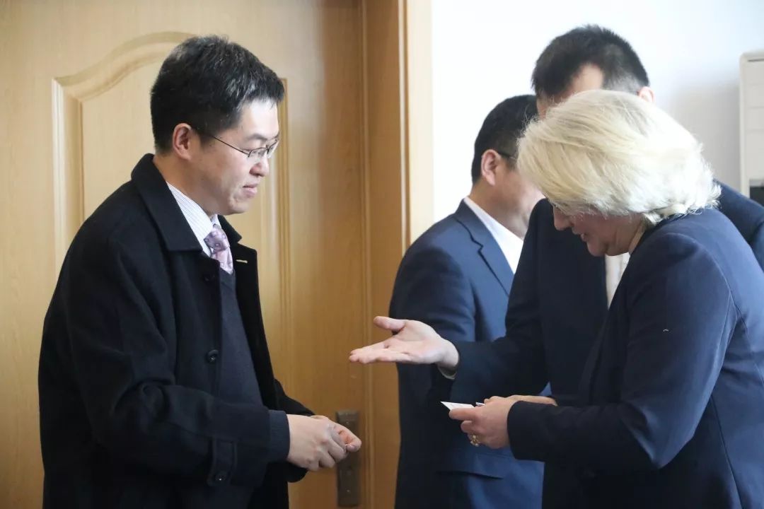 首先,我校各位老师对英国爱丁堡龙比亚大学的来访代表表示了热烈的欢迎,双方代表交换名片开始会议洽谈。
