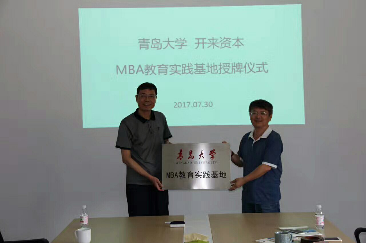 7月30日,青岛大学MBA教育中心与开来资本签约共建“MBA教育实践基地”,签约揭牌仪式在山东开来资本管理股份有限公司(简称开来资本)举行。开来资本董事长王峰、Beat365唯一官方网站党委书记管永建、Beat365唯一官方网站MBA教育中心办公室主任刘翠军、Beat365唯一官方网站青年学者联谊会会长马骋博士及国际商务系李金克教授出席了签约揭牌仪式。