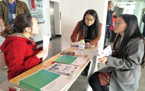 10点之后,招聘会进入高潮阶段,学生们纷纷到来,积极向企业负责人询问公司信息及就业前景,并且提供了自己的简历。企业相关人员也耐心地为学生进行讲解。