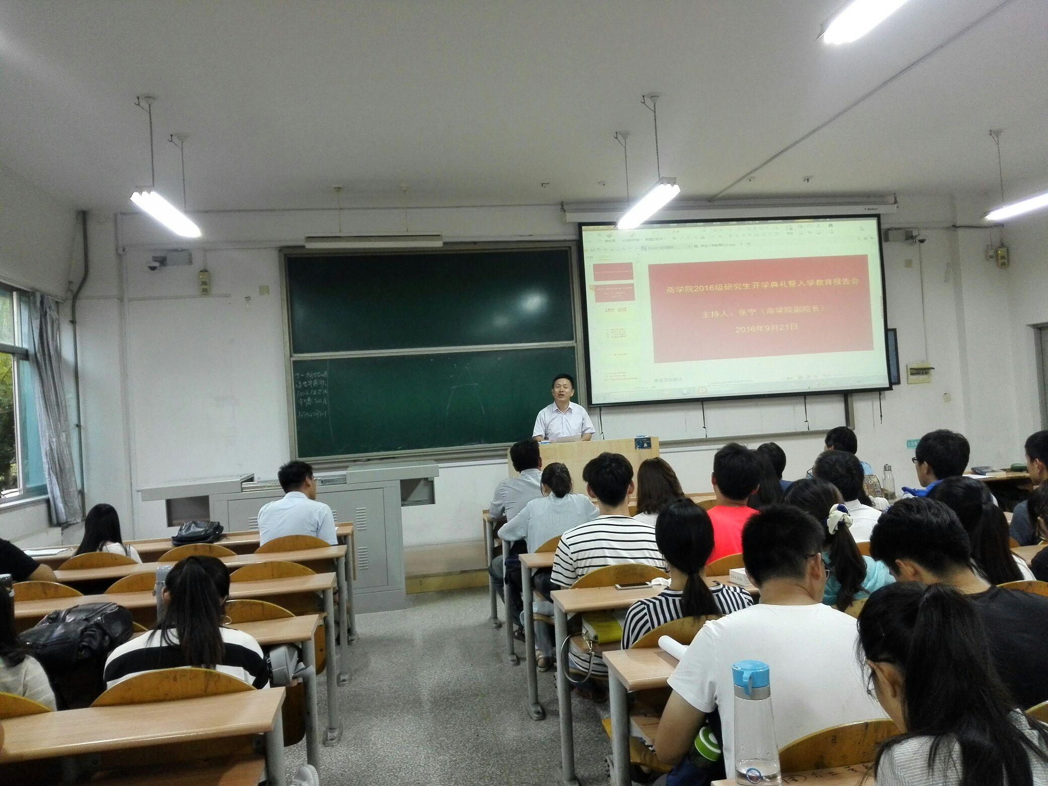 9月21日下午5:00,Beat365唯一官方网站2016级研究生开学典礼在西1教学楼隆重举行。开学典礼由副院长张宁主持,院长胡劲松教授、副书记陈崇研、副院长周咏梅教授、导师代表贺广明出席了开学典礼。出席开学典礼的还有院学科建设与研究生培养办公室的工作人员。