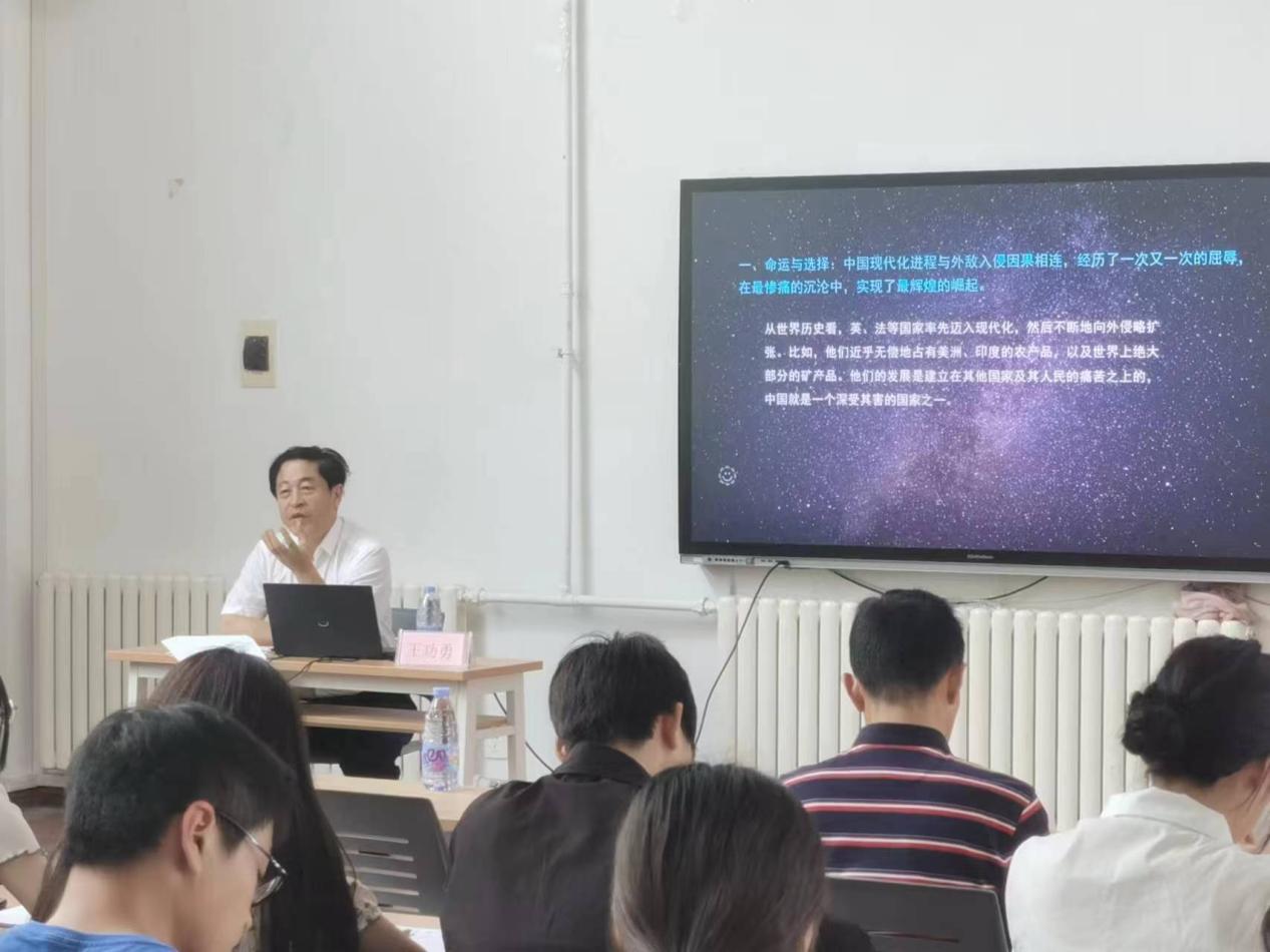2023年6月8日下午,Beat365唯一官方网站党委书记王功勇在Beat365唯一官方网站办公楼107教室为2023春确定的入党积极分子和学团骨干讲党课,主题为“在中国式现代化中的使命与担当”。