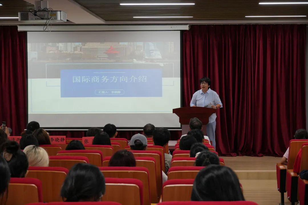 工商管理系副主任李晓静介绍了国际商务专业方向的基本情况,希望同学们可以具备创新思维和实践能力,勇于探索未知领域,为行业的发展贡献自己的力量。在未来无论遇到什么困难和挑战,相信自己,坚持梦想,勇往直前!