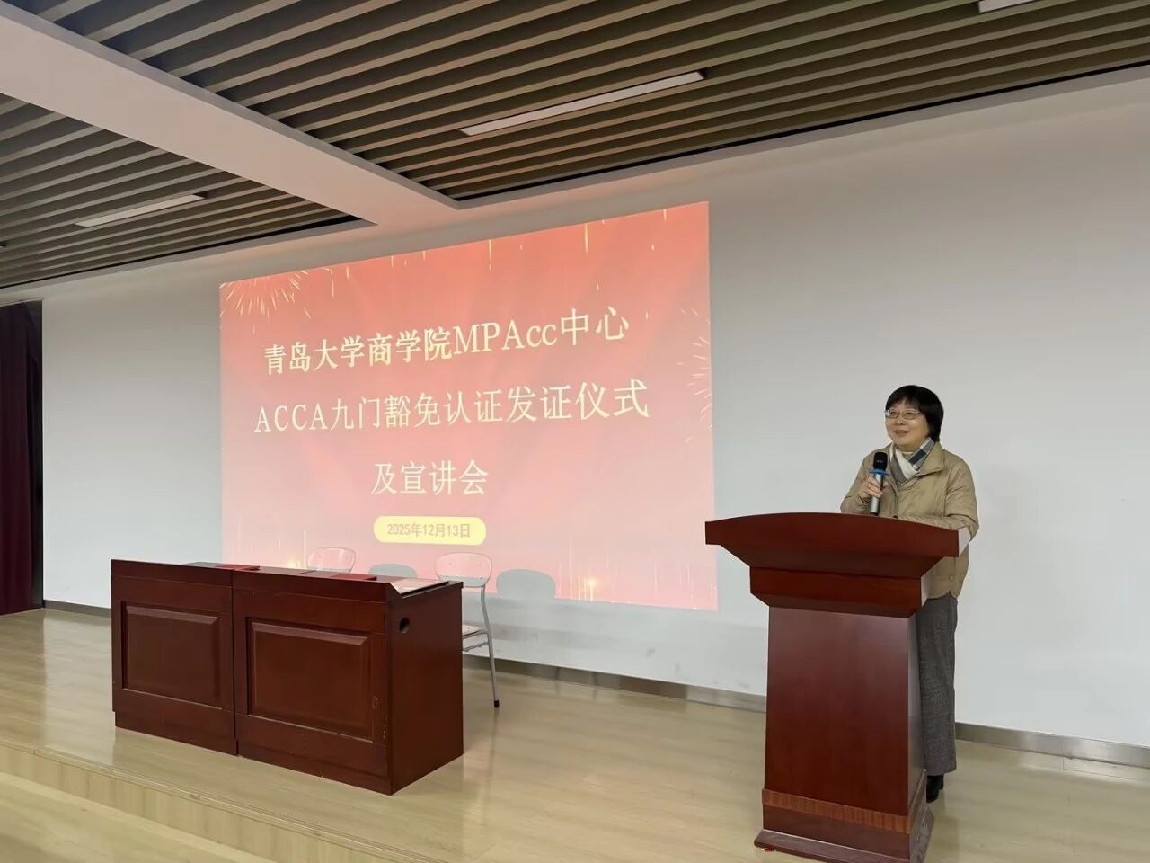最后,周咏梅对活动进行总结。她表示,学院为推动MPAcc项目与ACCA的合作付出了诸多努力,核心目标就是为同学们搭建更优质的成长平台。未来,学院将持续深化与ACCA的合作,整合更多教学资源、拓展实践渠道,为同学们提供更全面的服务与支持,助力每一位青大学子在财会领域实现国际化发展,成为兼具专业素养与全球视野的精英人才。