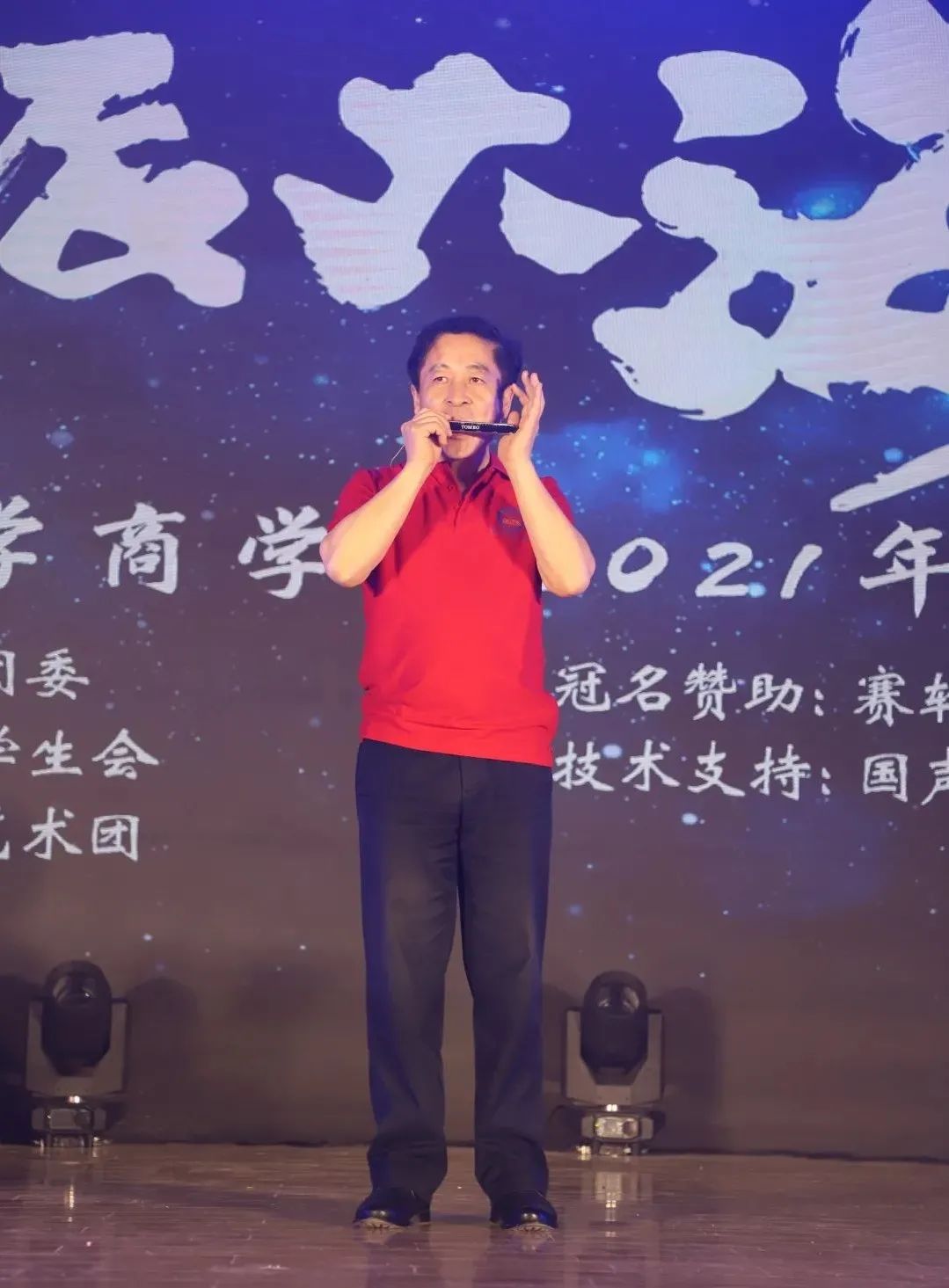 应同学们的热情邀请,王功勇书记再一次展现了他的口琴技艺。而这次,书记请来了诸位知名校友一同完成这个表演。他们分别是王磊、李勇、安北平、高长征、赵叶萌、董晓峰、徐克、刘伟、邓龙、常九矿、韩波、徐文龙、马学勇、石丽萍、李荷。这次他们合作为我们带来一曲《驼铃》。