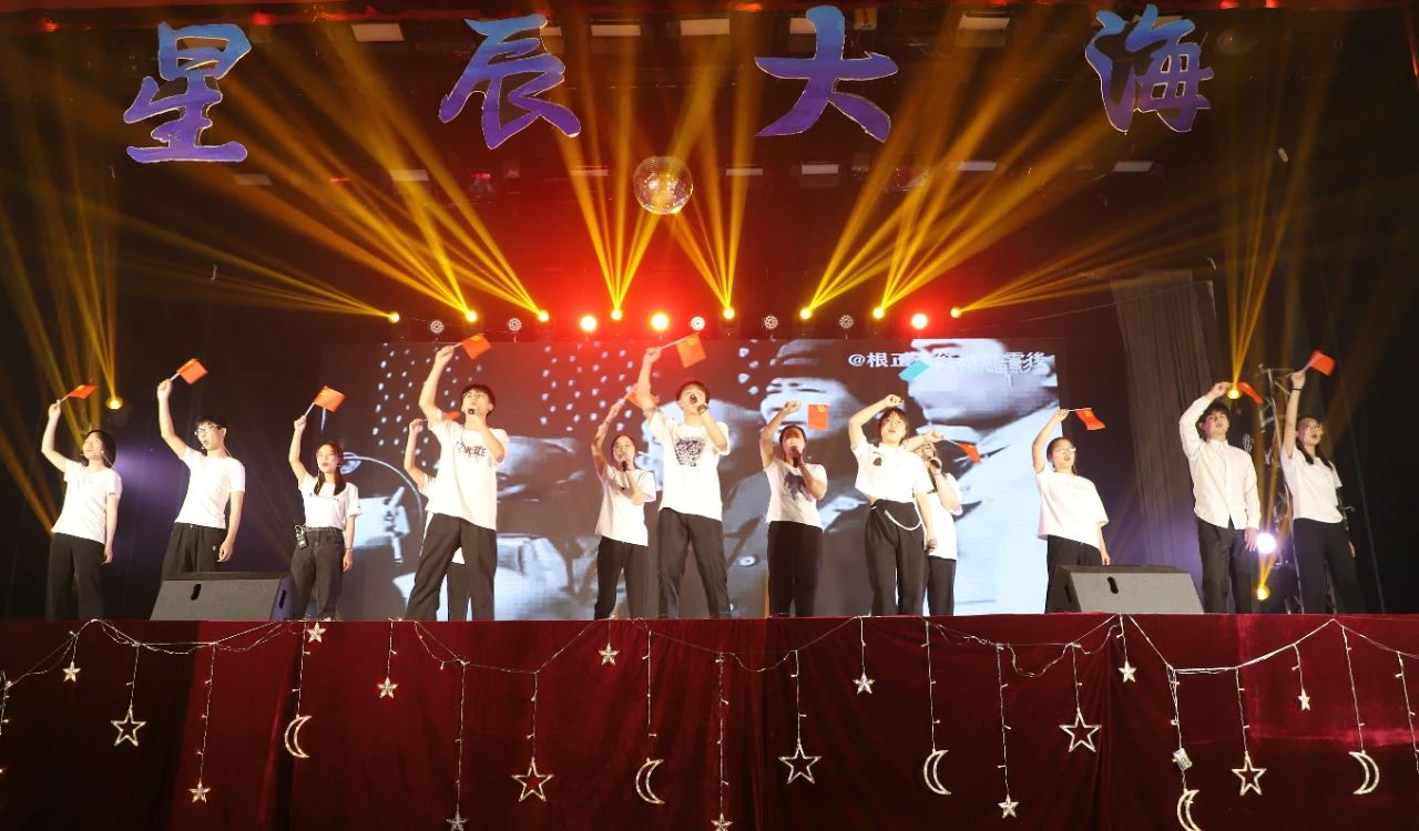 幕帘升起,灯光就位,演员候台,好戏开场。耀眼的灯光镭射全场,动感的音乐在耳边炸开, 舞者于舞台中央站定,旋转、跳跃,点燃的是全场的气氛。来自天空的声音,到达耳边的问候,伴随身边的温度, 起伏沉落破茧成蝶,飞向蓝天,我们的征程是星辰大海,我们的未来是一片光明!