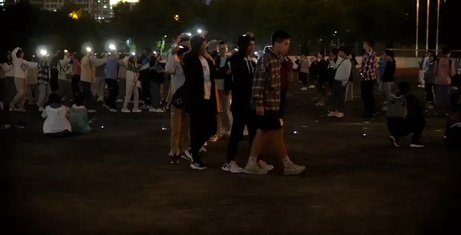 “很开心能够和20级的小萌新一起见证这个神奇的一刻,在看台上看着无人机的记录,看着祖国的海岸线一点一点的被描绘出来,当北京首都和“71”周年数字亮起来的时候,感觉非常兴奋,也很泪目。”