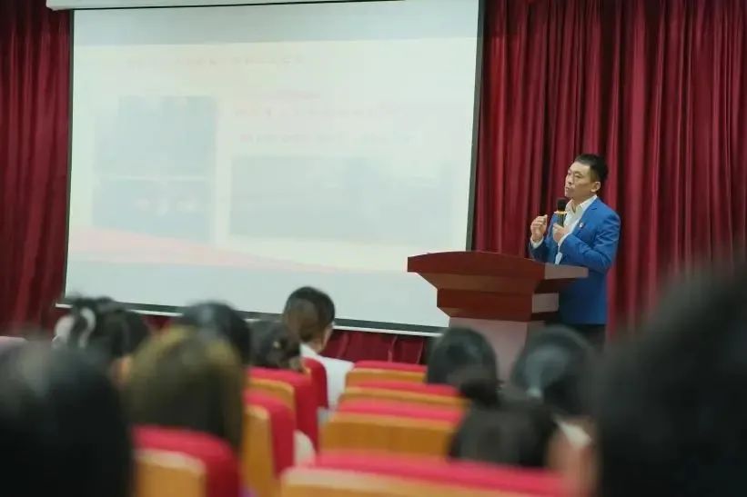 郭晋刚老师以“功崇惟志,业广惟勤”为主题,用质朴而真挚的语言,向大家讲述了他从普通学生到行业标兵的成长历程。每一个细节都充满了对劳动的热爱和尊重,每一个故事都彰显着劳动精神的伟大力量。在郭老师的讲述中,大家听到了他面对困难时的坚韧不拔,看到了他面对挑战时的勇往直前。他的故事让同学们深刻理解了劳动不仅创造了物质财富,更铸就了宝贵的精神财富。