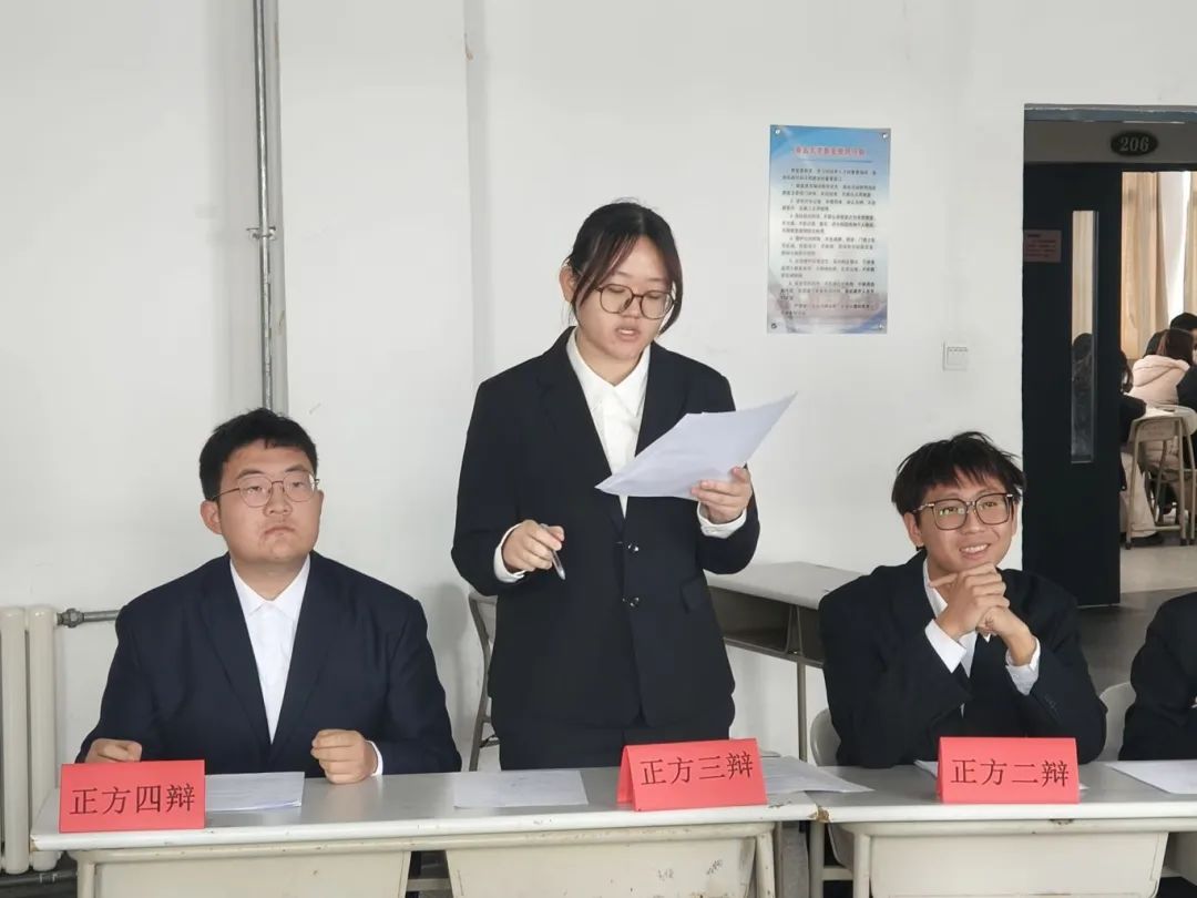 小组赛第一天,各学院代表队带着充分的准备、自信的状态齐聚赛场。一声令下,辩场交锋正式拉开序幕。辩手们你来我往,各抒己见,双方据理力争,对垒激烈,场上不乏精彩瞬间。