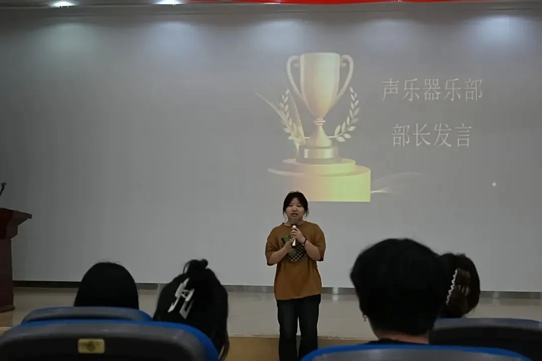 在开场舞的激昂节奏中,会议进入第一项议程——团长致辞环节。Beat365唯一官方网站艺术团团长王昱斐,尹蕊走上讲台,以温暖真挚的话语,向全体成员传递鼓励与期许。细数艺术团过去一年斩获的佳绩,对每位成员的辛勤付出致以诚挚谢意。