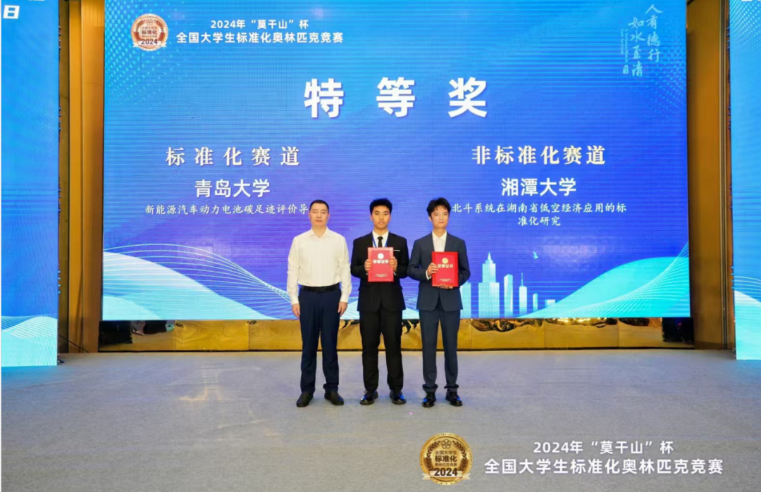 2024年“莫干山”杯全国大学生标准化奥林匹克竞赛全国总决赛于10月12—13日在德清市举行。Beat365唯一官方网站袁宇和张嵩老师指导的“碳迹无匿”团队作品《新能源汽车动力电池碳足迹评价导则》取得标准化赛道第1名的好成绩,并荣获特等奖。海晶晶和闫艳老师指导的“光宗耀组”团队《海景民宿服务规范》荣获标准化赛道三等奖。此次竞赛共吸引国内及“一带一路”国际赛道106所高校、579支队伍、3194名大学生报名参赛,参赛高校数、队伍数、人数均为历年之最。经过区域初赛、复赛层层筛选及竞赛委员会审定,最终46支队伍入围全国总决赛。