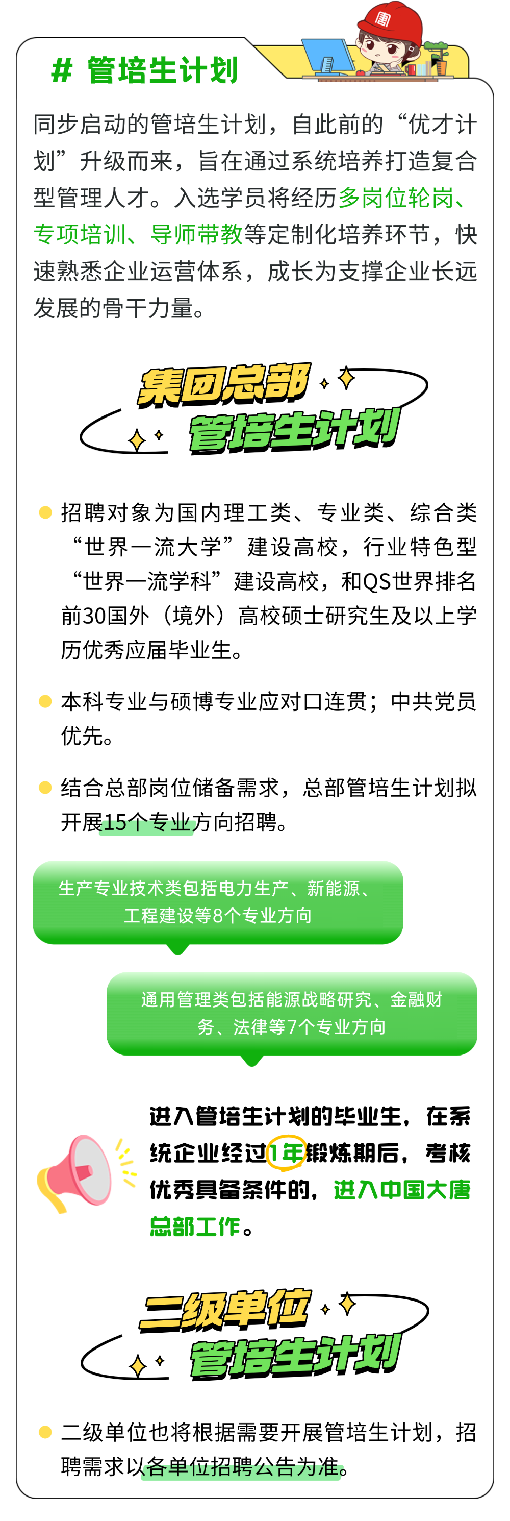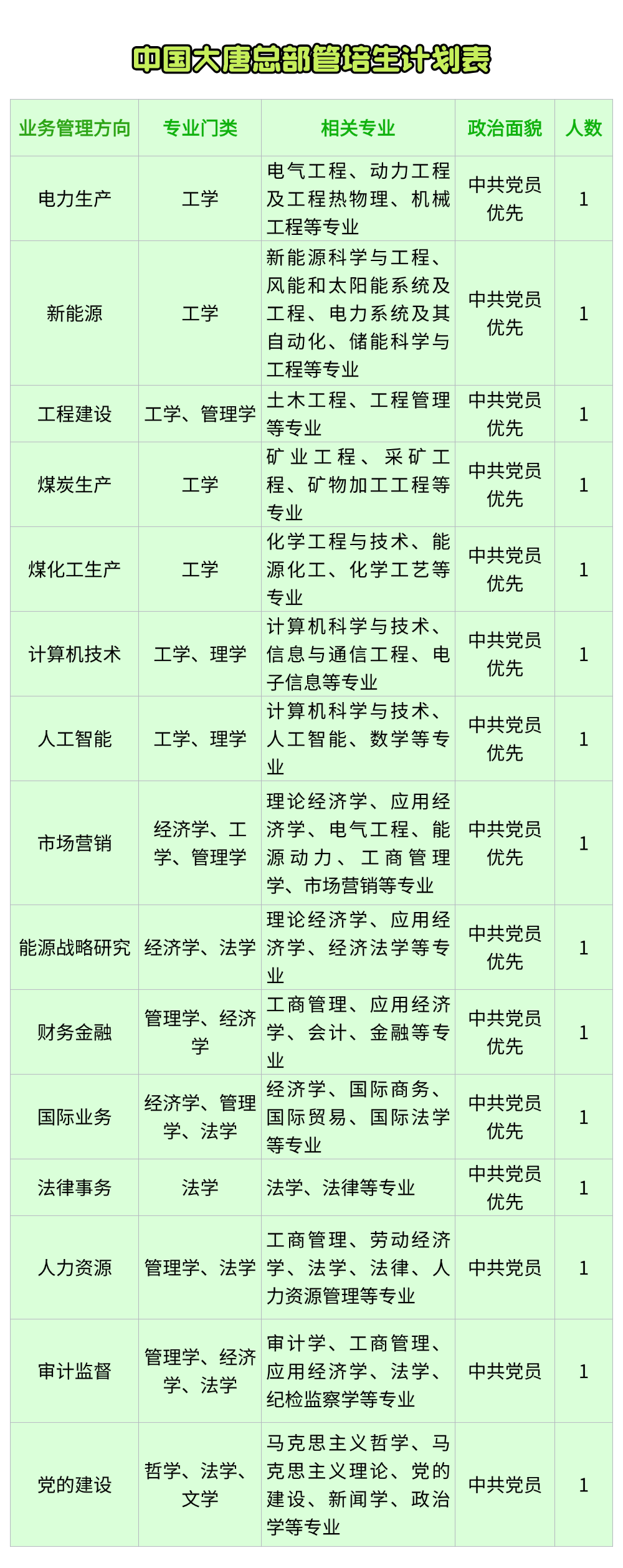 从9月30日起,中国大唐集团有限公司(以下简称“中国大唐”)2026届校园招聘正式开启网上报名,并同步推出“管培生”计划,面向海内外高校应届毕业生广纳贤才,为企业高质量发展注入新生力量。