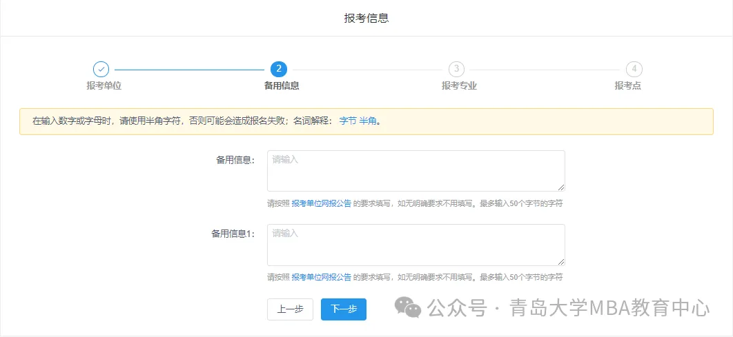请先填写1考生信息,再填写2报考信息。请点击网报公告,查看招生单位(报考院校)的公告,报考点(考试地点)的公告,请务必仔细阅读报考点公告。