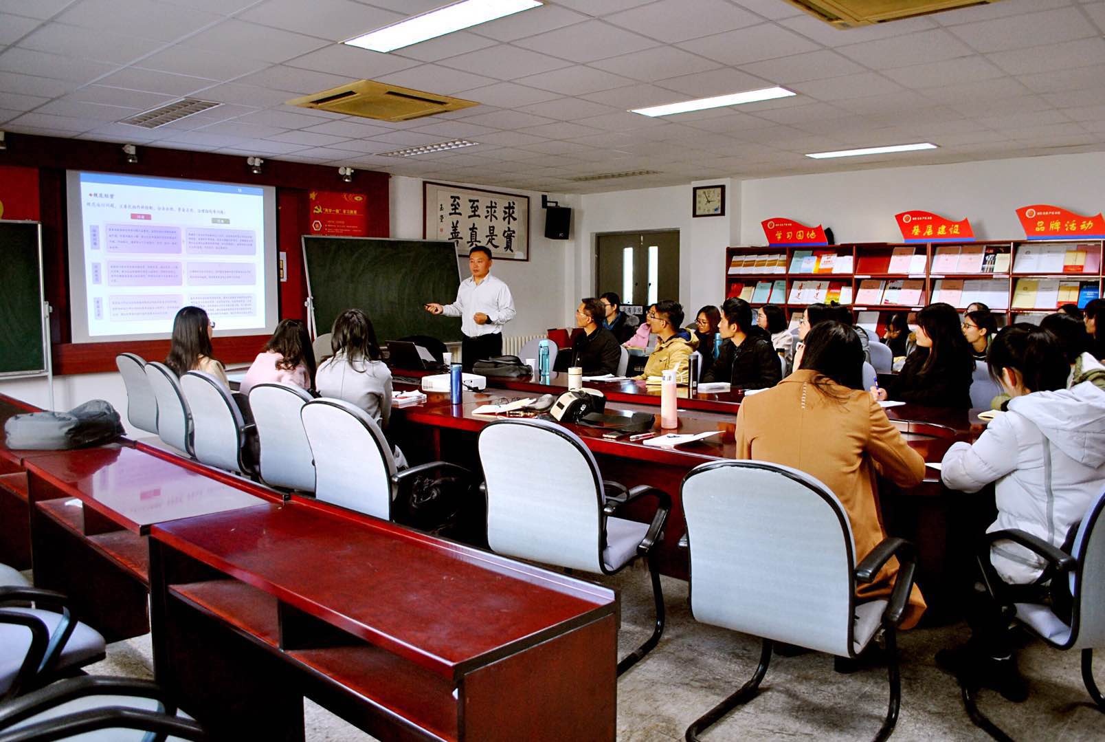 刘斌总裁后来向大家介绍了股权投资,这一部分主要内容有上市企业需要注意的问题,并购对价的支付方式等。在场的各位同学,无一不聚精会神,甚至有同学奋笔疾书进行记录。最后,刘斌总裁精细的讲述了IPO相关内容,如成本检查主要工作等。