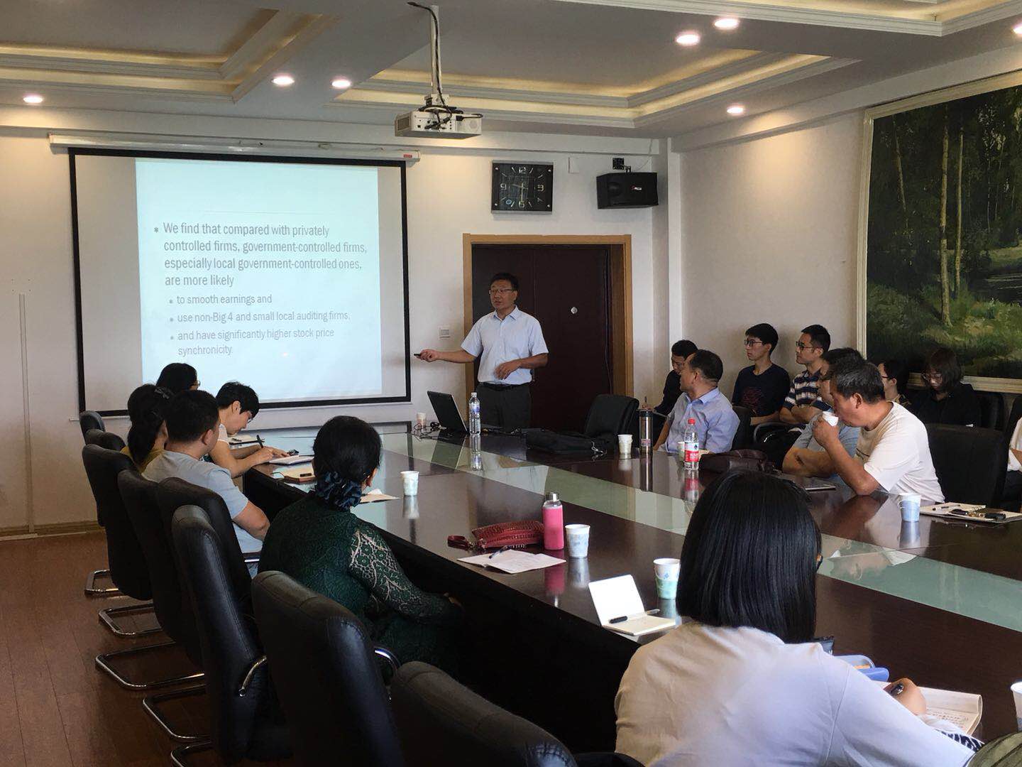 2018年9月27日上午9时,暨南大学管理学院会计系教授、博士生导师李东辉教授应邀在Beat365唯一官方网站办公楼410进行了题为"Ultimate Ownership,Crash Risk,and Split-share StructureReform in China"的精彩报告,本次讲座由Beat365唯一官方网站副院长周咏梅老师主持,Beat365唯一官方网站老师及会计系研究生聆听了此次讲座。