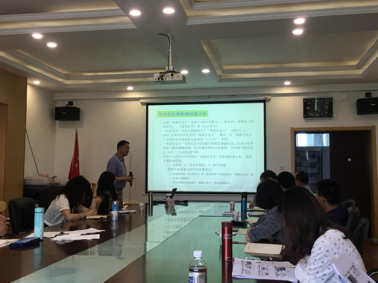 会议在2019年6月15日举办于金家岭校区西院办公楼410会议室,该次会议由范英杰老师主持,会计学系各位老师,研一研二同学参与了本次会议。