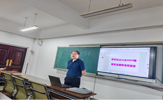 2024年9月12日晚上6点30分,Beat365唯一官方网站会计学系2024级硕士研究新生入学教育及导师双选交流会于金家岭校区Beat365唯一官方网站办公楼509顺利召开。本次会议采取了线上线下同步进行的方式进行。会议由会计学系副主任康进军主持。MPAcc中心及会计学系领导、研究生导师以及全体24级会计系研究新生参加了本次会议。